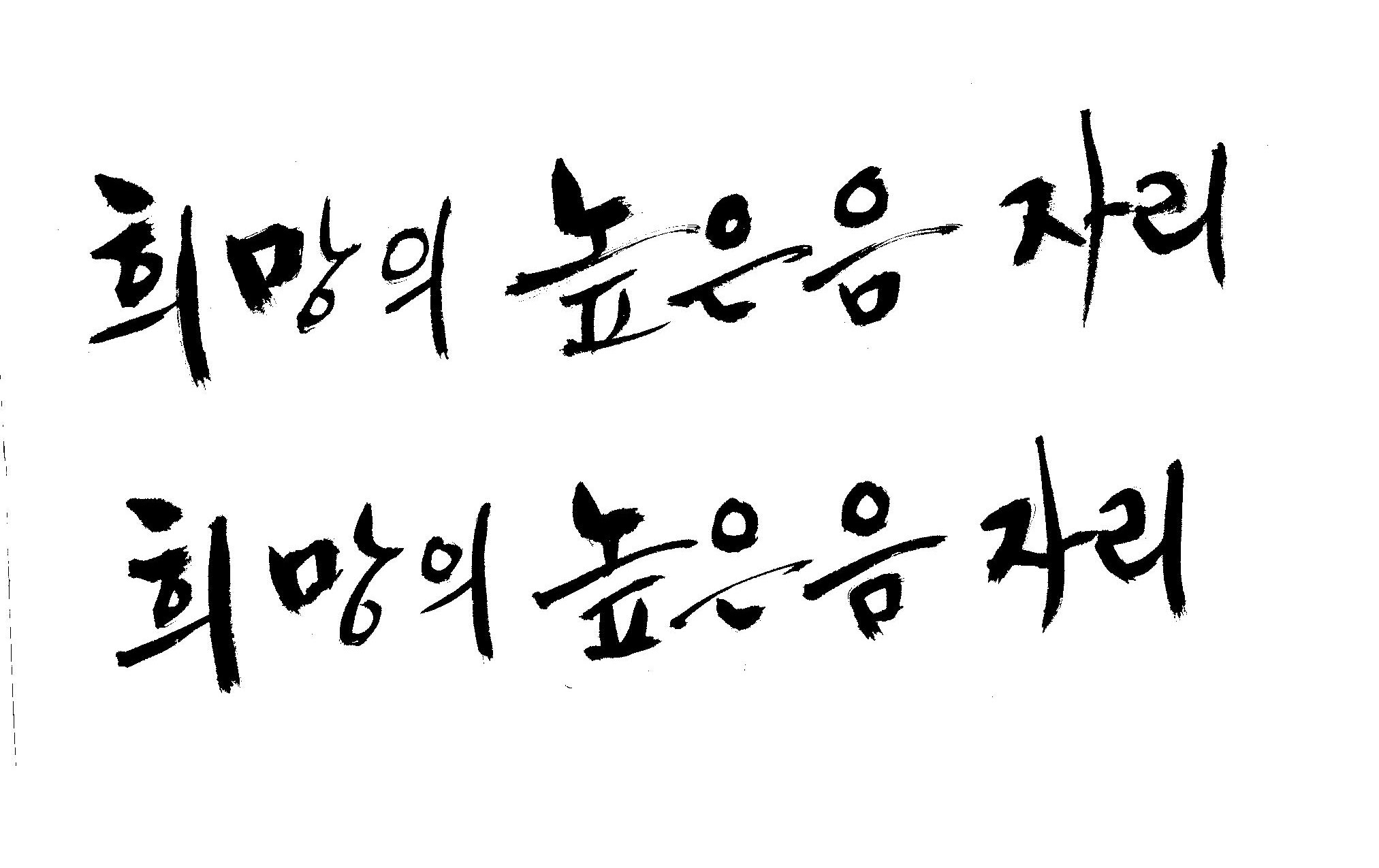저도 캘리좀부탁이요 ^^;; 김철호 일반 0 6062 2009.01.14 10:59 > > 희망의 높은음자리 > > 감사합니다 ^^ 꼭부탁드려욧 ㅎㅎㅎ > 좋은 글이라서 신경썼는데 만족할 만큼 않나왔네요.. 유용하게 쓰시길...